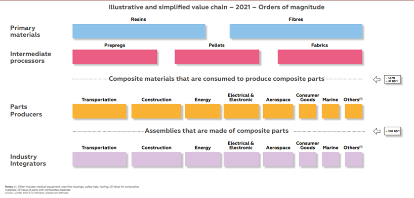 复合材料行业是一个充满活力的行业,拥有非常强劲的增长前景:在2020 年产量下降之后,全球复合材料行业正在逐步恢复到大流行前的增长率,其中能源、电子/电气、建筑、海洋和消费品市场显现出快速复苏。新兴领域也出现了新的增长机会,如电动汽车和氢燃料汽车。这个名单还在继续.....从海洋、体育和娱乐、再到医疗、电气和电子、石油...