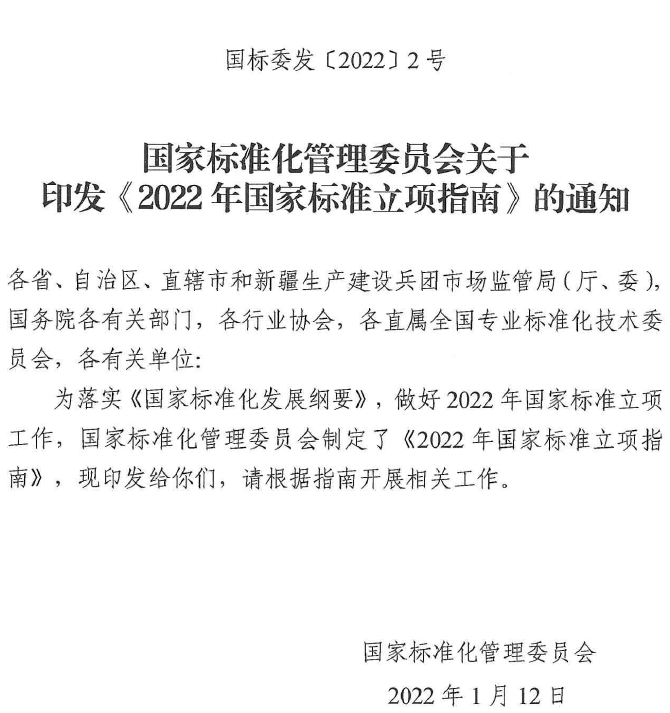 日前,国家标准化管理委员会关于印发《2022年国家标准立项指南》的通知正式发布。其中,推荐性国家标准包括:航空等产业急需应用的碳纤维复合材料质量稳定性检测,及碳达峰碳中和有关标准。