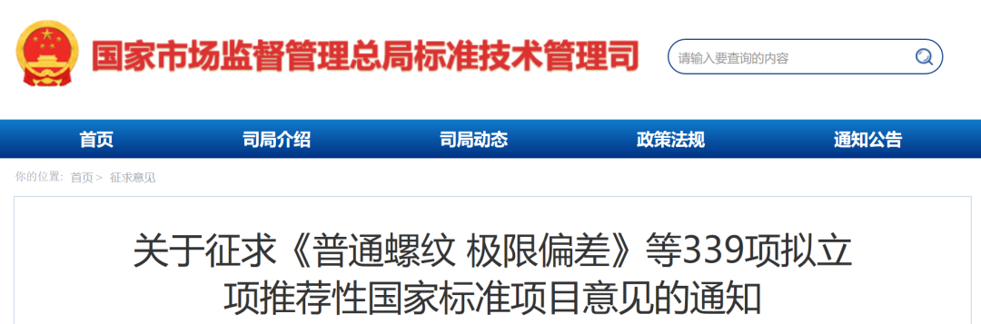 日前,《关于征求〈普通螺纹 极限偏差〉等339项拟立项推荐性国家标准项目意见的通知》正式发布。涉及玻璃纤维、碳纤维及复合材料的相关标准: