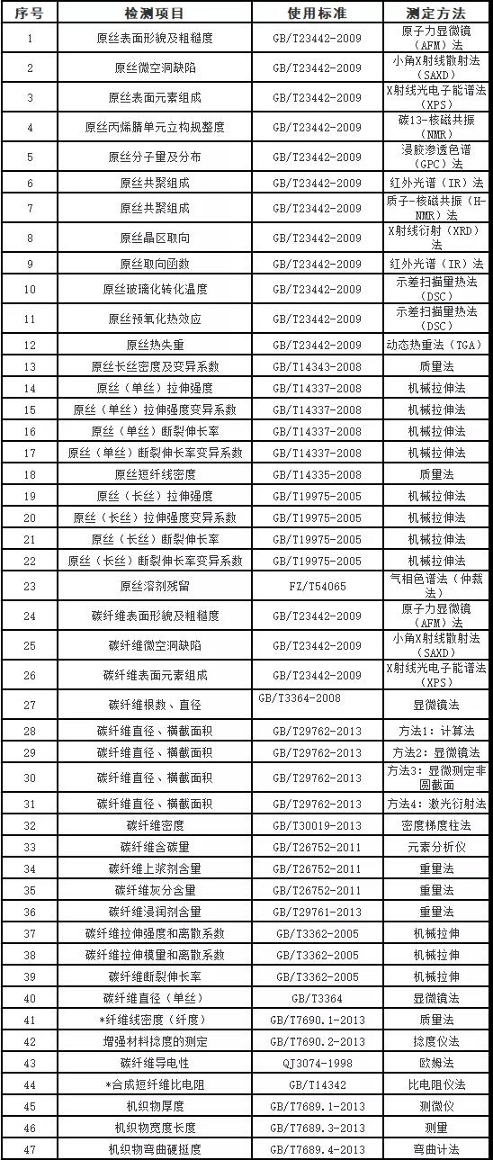 碳纤维及其复合材料的检测,目的是为了:描述碳纤维及其复合材料体系的物化、力学及工艺特征,表征体系材料的外貌、微观结构和组成。包括以下内容:(1)外观形貌及微观结构的观测;(2)物理及化学性能的检测;(3)力学性能的检测;(4)其他特别需要检测的项目。碳纤维及其复合材料标准汇集1、增强材料2、树脂基体3、预浸料4、复合材...