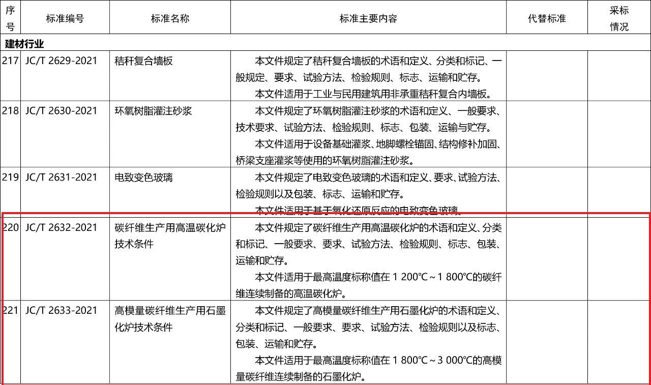 据工信部科技司网站消息,根据行业标准及国家标准制修订计划,相关标准化技术组织已完成《碳纤维生产用高温碳化炉技术条件》《高模量碳纤维生产用石墨化炉技术条件》等16项建材行业标准、《泡沫玻璃绝热制品》等2项建材行业标准外文版的编制工作。现已予以公示,并向社会广泛征求意见。此次共有290项行业标准、10项行业标准外文版及6项...