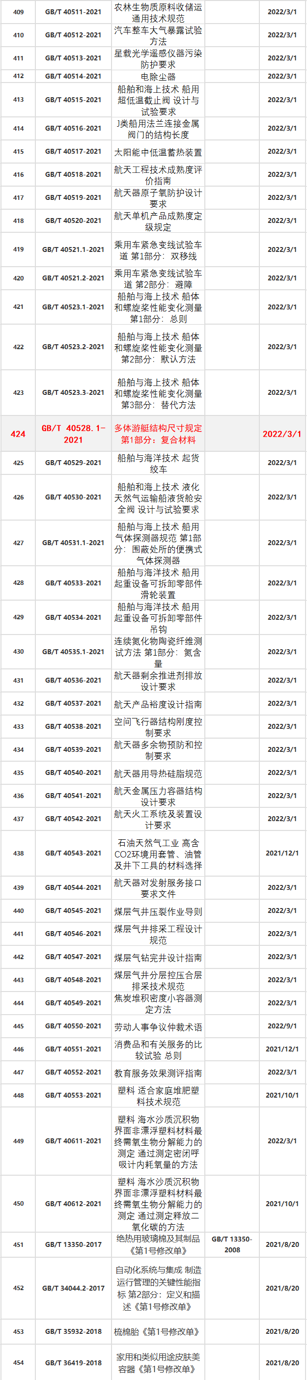 日前,国家市场监督管理总局(国家标准化管理委员会)批准《钢铁及合金 硅含量的测定 电感耦合等离子体原子发射光谱法》等450项推荐性国家标准和4项国家标准修改单。其中涉及多项复合材料国家标准。具体内容如下: