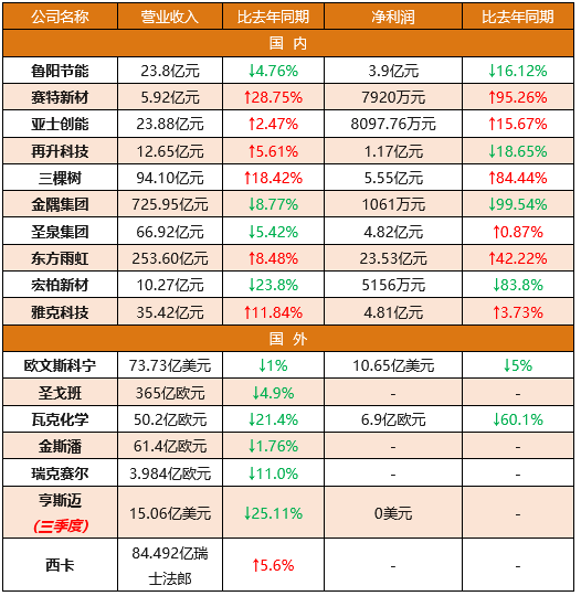下面,小棉袄将对全球部分绝热材料上市企业2023年前三季度业绩进行汇总分析,各企业具体业绩情况见表1、表2。