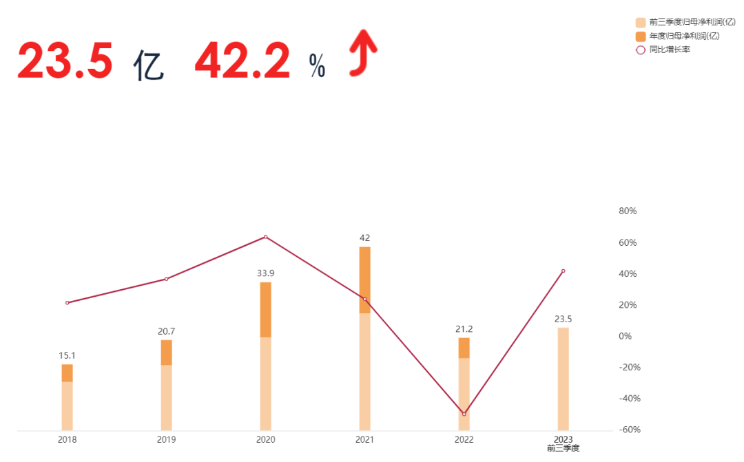 东方雨虹发布10月25日发布2023年第三季度报告称,今年前三季度,东方雨虹实现营业收入253.60亿元,同比增长8.48%,其中零售渠道营收76.17亿元,同比增长37.01%。归母净利润23.53亿元,同比增长42.22%,延续了今年上半年实现营收、净利润双增长的良好态势。第三季度营业总收入85.08亿元,同比上升5.41%,第三季度归母净利润10.19亿元,同比上升48.05%。