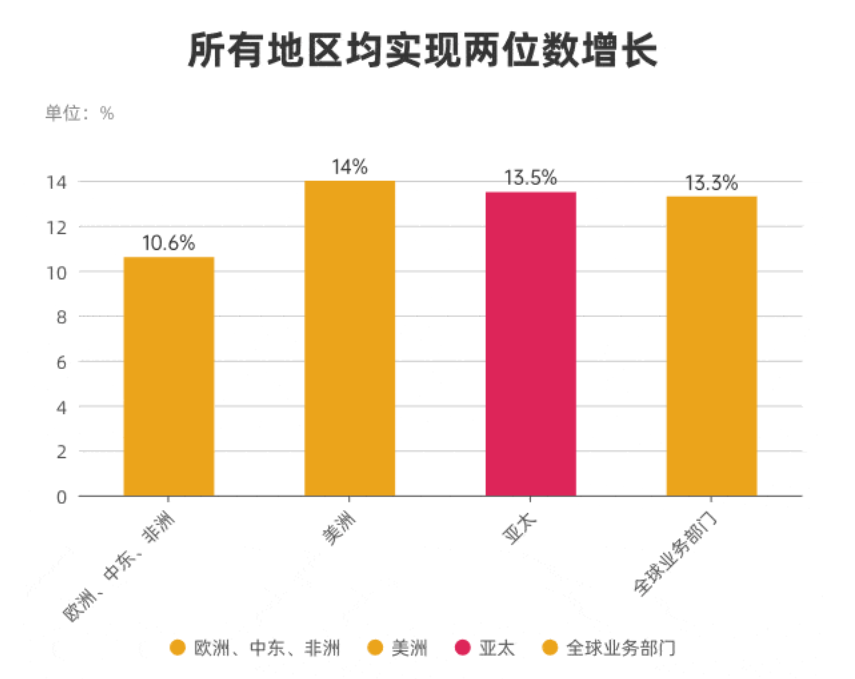 亚太区九个月的有机增长率为5.1%,第三季度有机增长率为3.0%。