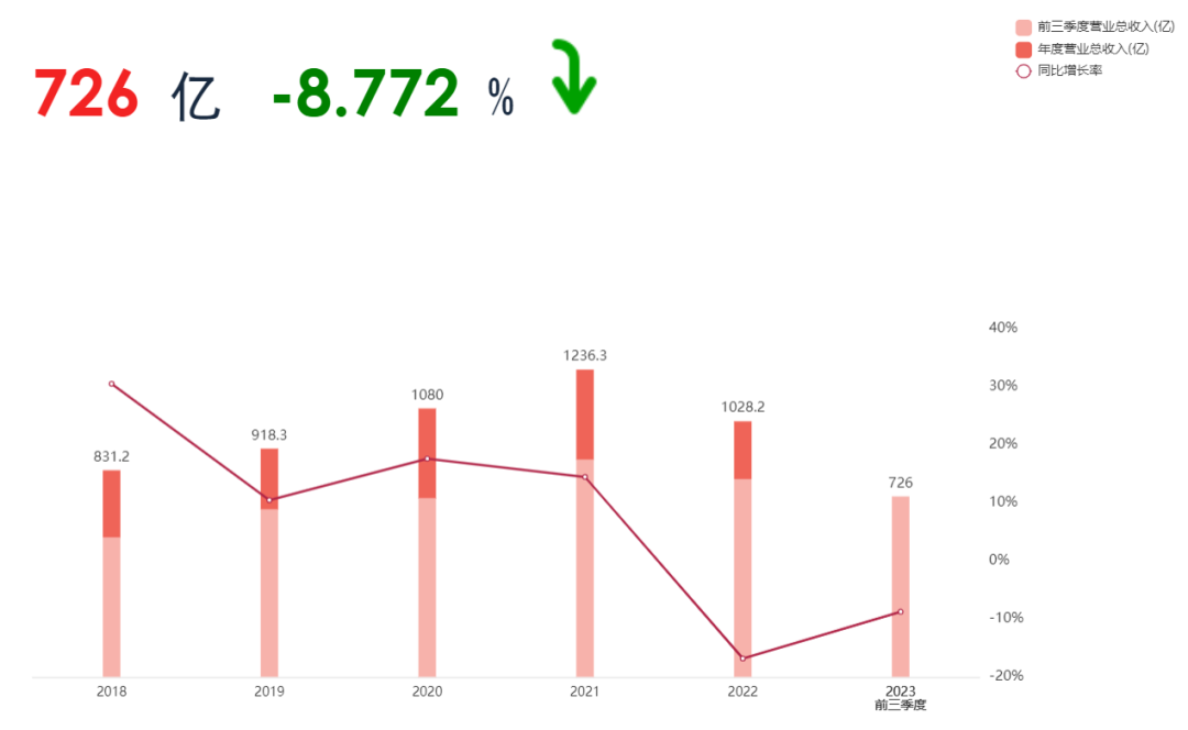 ●2023年第三季度集团销售额为15.2亿欧元,比上年同期下降29%