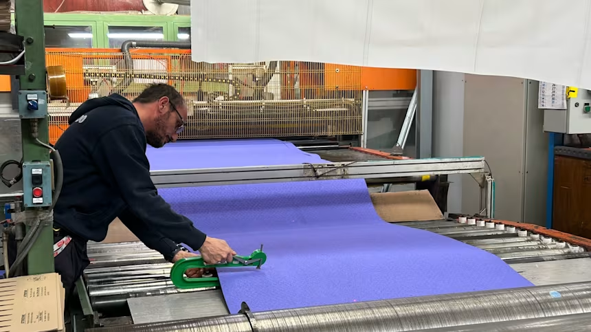 (盟多工厂生产的巴黎奥运会田径跑道 图源:盟多)