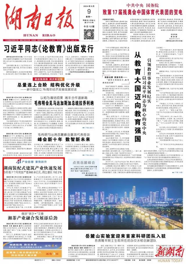 今年以来,湖南省大力实施重点产业倍增计划,把装配式建筑作为重点产业培育,成立省工作专班压茬推进产业倍增行动。湖南省住建厅出台《湖南省装配式建筑发展提升三年行动方案》,提出“创新体系建立完善、核心技术迭代更新、产业结构优化升级”的发展目标,明确到2024年底湖南全省装配式建筑产值达2000亿元,到2026年底产值达5000亿元。