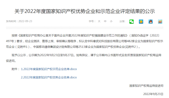 近日,国家知识产权局公布了“2022年度国家知识产权优势企业和示范企业评定结果公示”,南京玻璃纤维研究设计院有限公司荣获2022年度国家知识产权优势企业、中材科技股份有限公司荣获2022年度国家知识产权示范企业。南京玻纤院先后获得“江苏省知识产权管理标准化示范先进单位”和“江苏省级知识产权运用示范企业”等荣誉称号,此次...