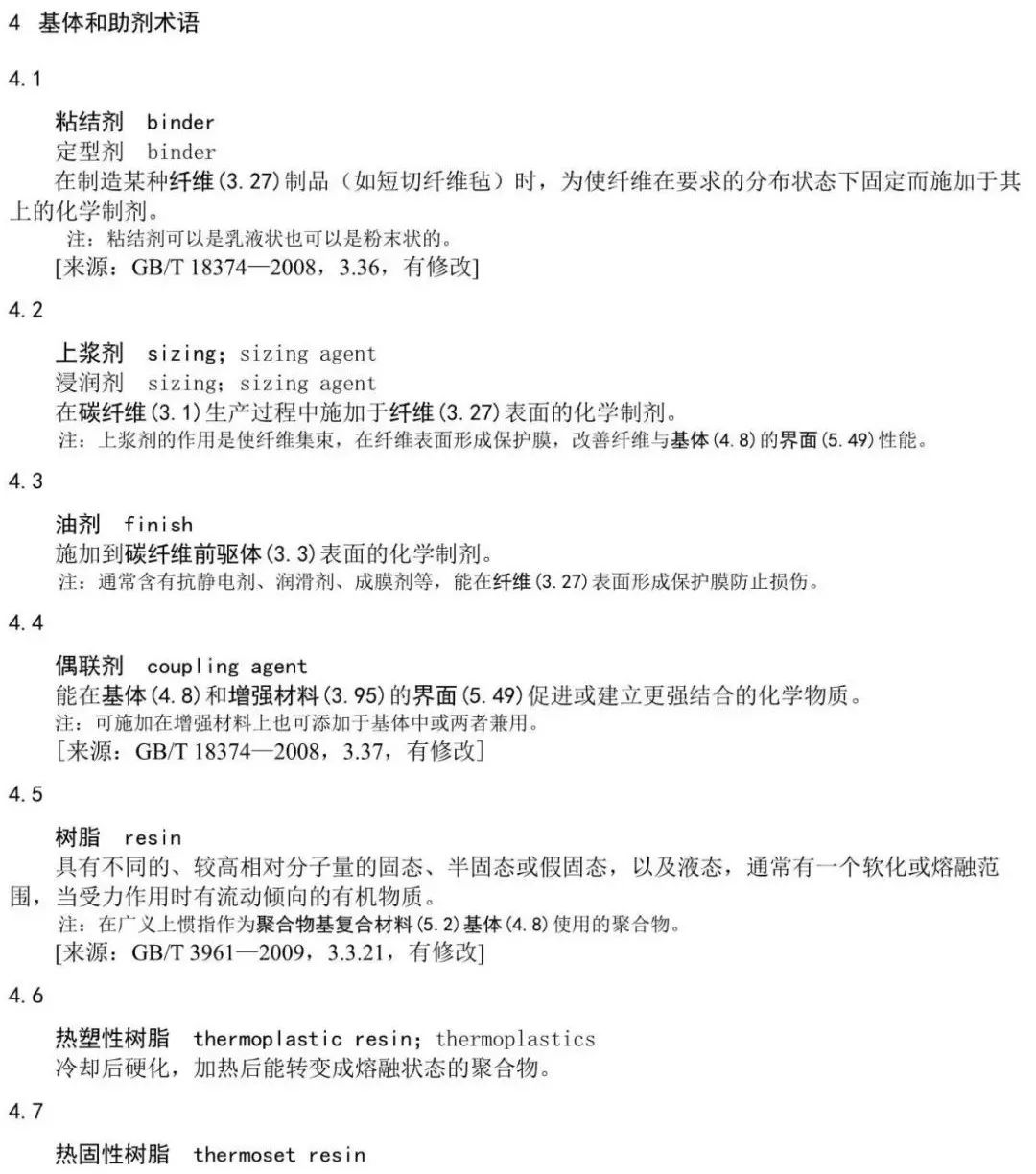 本期将继续为大家带来GB/T 40724—2021《碳纤维及其复合材料术语》国家标准的“4 基体和助剂术语”章节的相关内容。