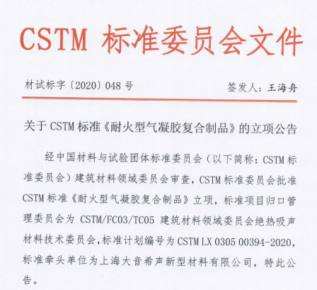根据CSTM标准委员会发布的材试标字[2020]047、048号文,由上海大音希声新型材料有限公司、南京玻璃纤维研究设计院有限公司负责起草制定的《耐火型气凝胶复合制品》、《低温用气凝胶复合毡》两项团体标准计划正式立项。《耐火型气凝胶复合制品》标准立项公告《低温用气凝胶复合毡》标准立项公告气凝胶复合制品以其超低的导热系数...